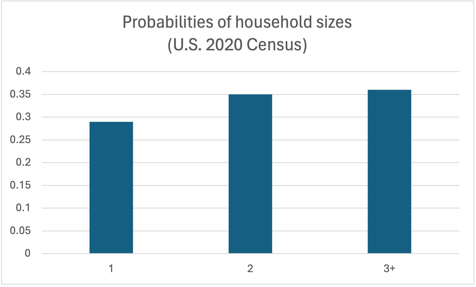 The 2020 United States Census found the number of households of different sizes. (Source: Table H2 from