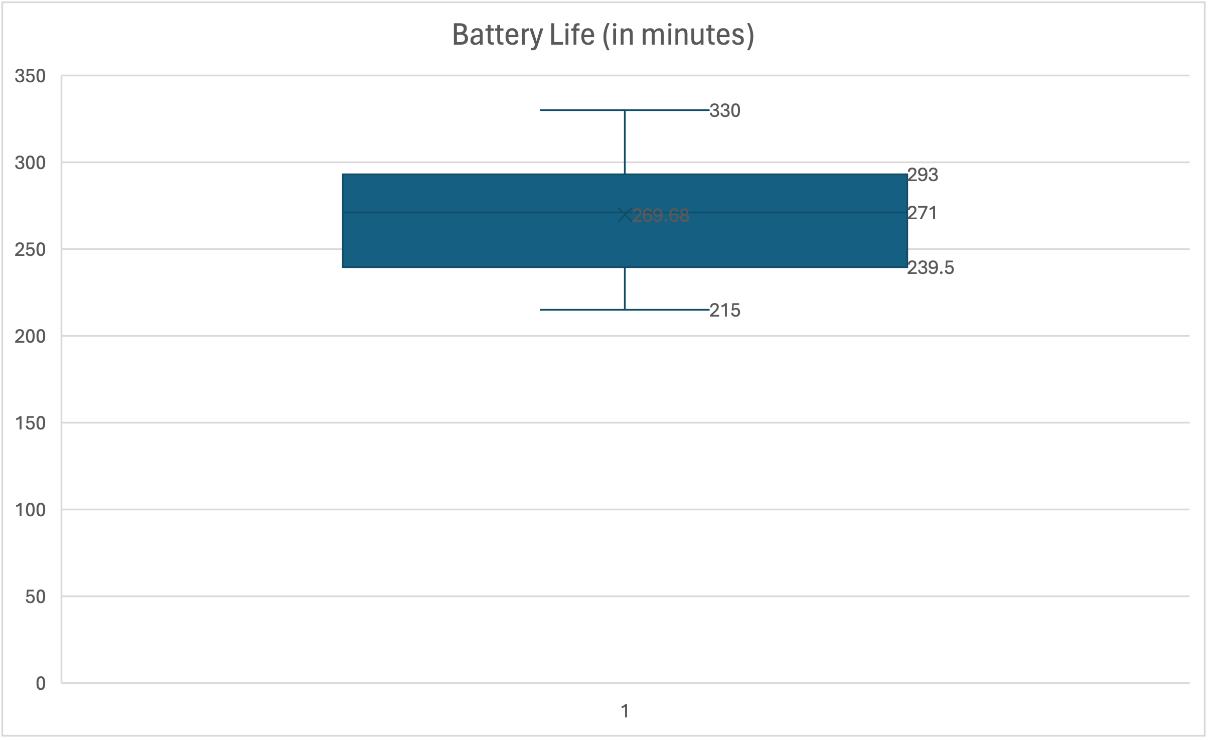 The data in the Excel file below indicates the battery life, in minutes, on a single charge, for 25 iPads.